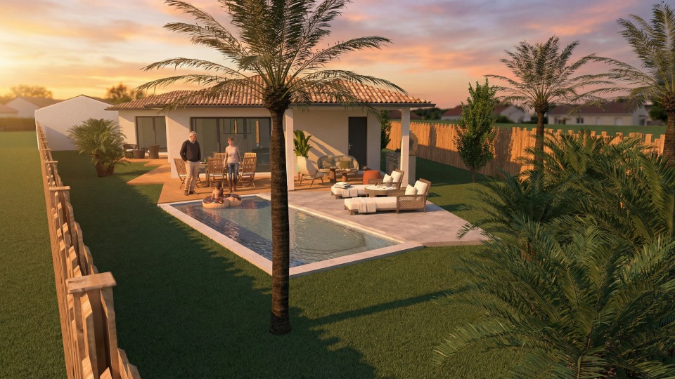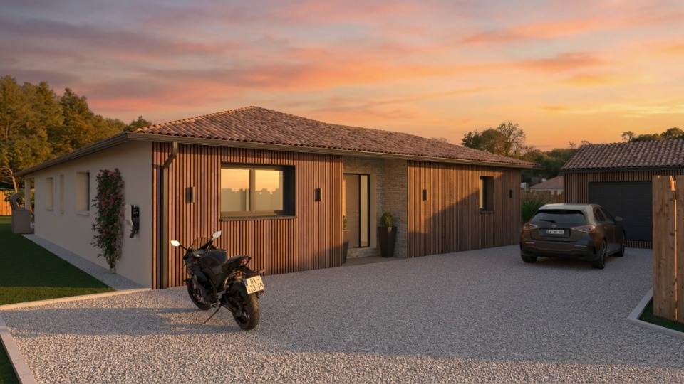 So'9 Habitat, Constructeur de maisons à Bordeaux, vous propose dans le cadre d'un projet de construction : Maison contemporaine de 140m2 composée d'une entrée séparée avec placard, 3 chambres (12, 12 et 15m2) et une suite parentale de 20m2 (dressing, salle d'eau), une salle de bain (double vasque, baignoire et wc), wc séparés, un salon de 26m2 exposé sud-ouest, une cuisine dinatoire ouverte de 26m2 exposée sud-est et sud-ouest et enfin d'un cellier buanderie de 6m2. Le tout est complété par une terrasse couverte et un garage individuel. Terrain de 840m2 environ à Léognan, quartier Le Brulat Groupe scolaire Jean Jaurès à 3min à pieds Idéal pour maison de plain pied entre 100 et 150m2 habitables Terrain clôturé et piscinable Très bonne orientation Choisissez So'9 Habitat pour vous accompagner dans votre projet, trouver le terrain adapté et concevoir une maison sur mesure. Nous sélectionnons et validons les meilleures opportunités foncières sur le secteur. Contactez-nous pour une étude personnalisée de votre projet et la présentation des terrains disponibles. À bientôt, L'équipe So'9 Habitat So'9 Habitat Bordeaux 201 rue Georges Bonnac 33000 Bordeaux