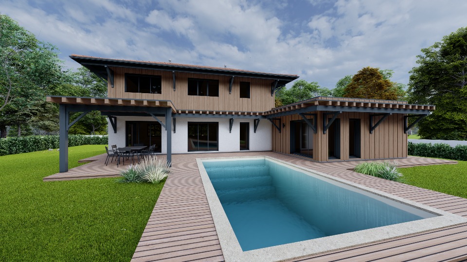 Dans un environnement verdoyant et préservé, au coeur de Saint-Médard-en-Jalles, découvrez une opportunité rare : un terrain viabilisé de 1 420 m², sublimé par un projet de maison contemporaine de 154 m² habitables. Conçue pour offrir confort et élégance, cette villa d'architecte propose une distribution harmonieuse : un vaste espace de vie baigné de lumière, une suite parentale au rez-de-chaussée avec dressing et salle d'eau privative, ainsi que deux belles chambres à l'étage accompagnées d'une salle de bain raffinée. Les volumes généreux se prolongent vers l'extérieur avec une grande terrasse couverte, idéale pour recevoir et profiter de la quiétude du jardin en toute saison. Un garage de 35 m² vient compléter ce bien d'exception, répondant aux attentes de praticité et de confort. Alliant modernité, élégance architecturale et cadre naturel préservé, ce projet offre un véritable art de vivre, à quelques minutes seulement des commodités, des écoles et des axes principaux de la métropole bordelaise. Contactez Thomas Carré, SO9 Habitat, O637033308